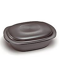 Изделие овальной формы высотой 10 см цвета мокрого асфальта состоит из основания – 2 л и крышки – 800 мл.
